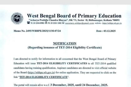 পশ্চিমবঙ্গ প্রাথমিক শিক্ষা বোর্ড (WBBPE) থেকে ০৩ ডিসেম্বর ২০২৫ তারিখে একটি অধিসূচনা…